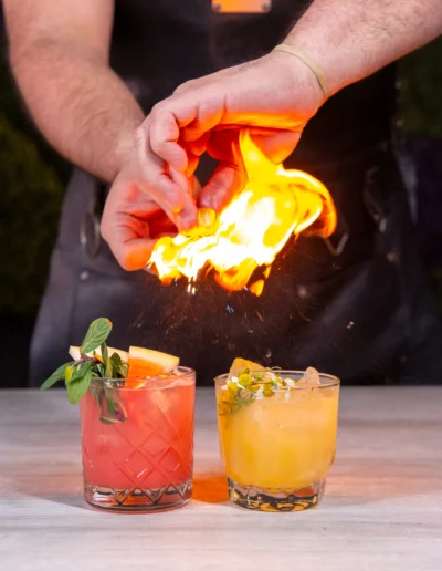 Barra completa con cocteles, cervezas artesanales, vinos y bebidas sin alcoho